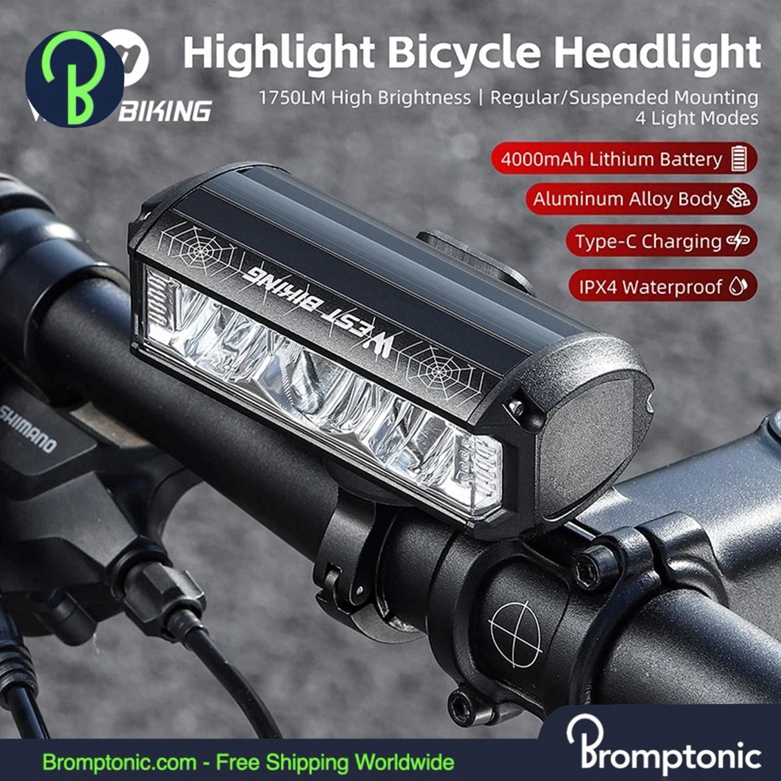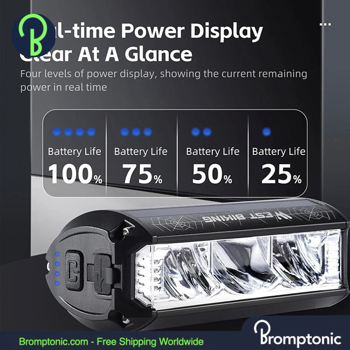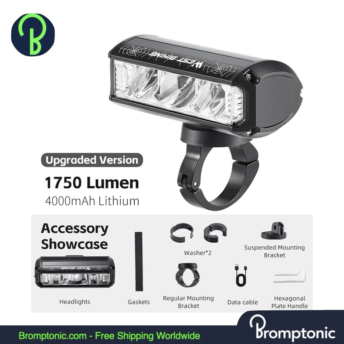 Luce per bicicletta Brompton 1750 lumen a 3 LED - Luce anteriore a manubrio ad ampio raggio