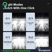 - Modalità di illuminazione multiple: Include le modalità anabbagliante, abbagliante centrale, piena luminosità e lampeggiante.