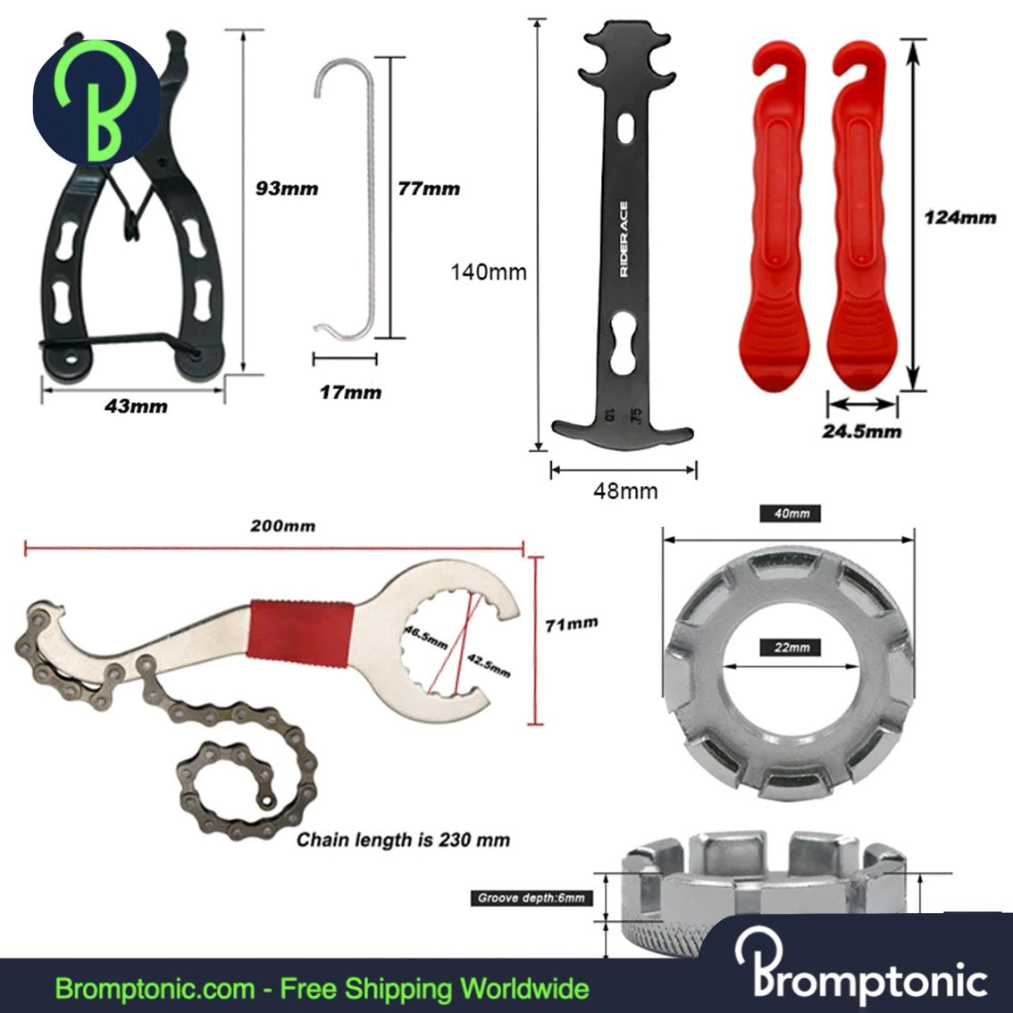 Kit di attrezzi per la riparazione di biciclette Brompton con attrezzi per catena e pedivella