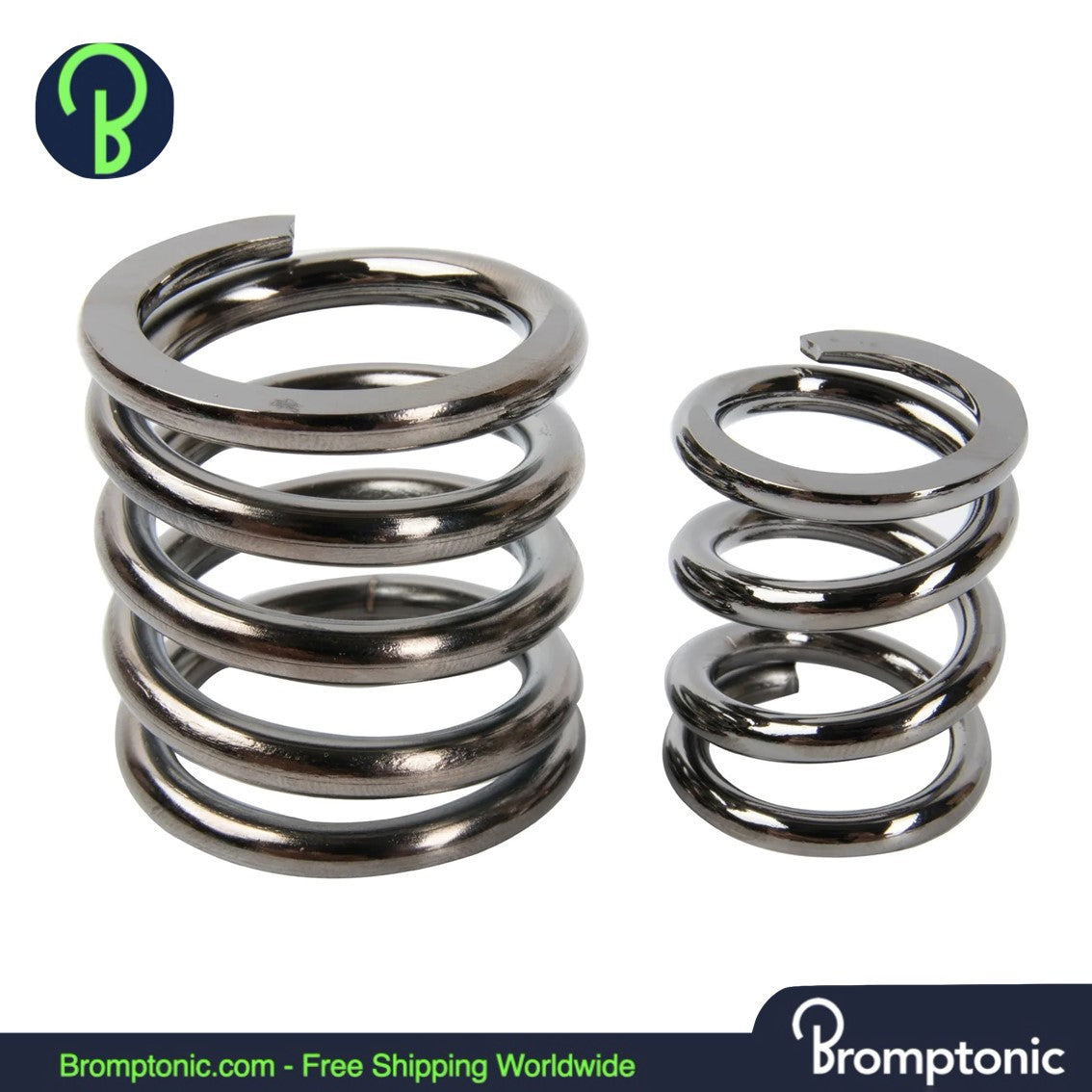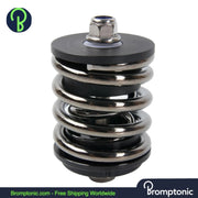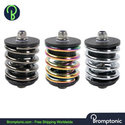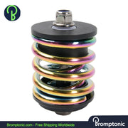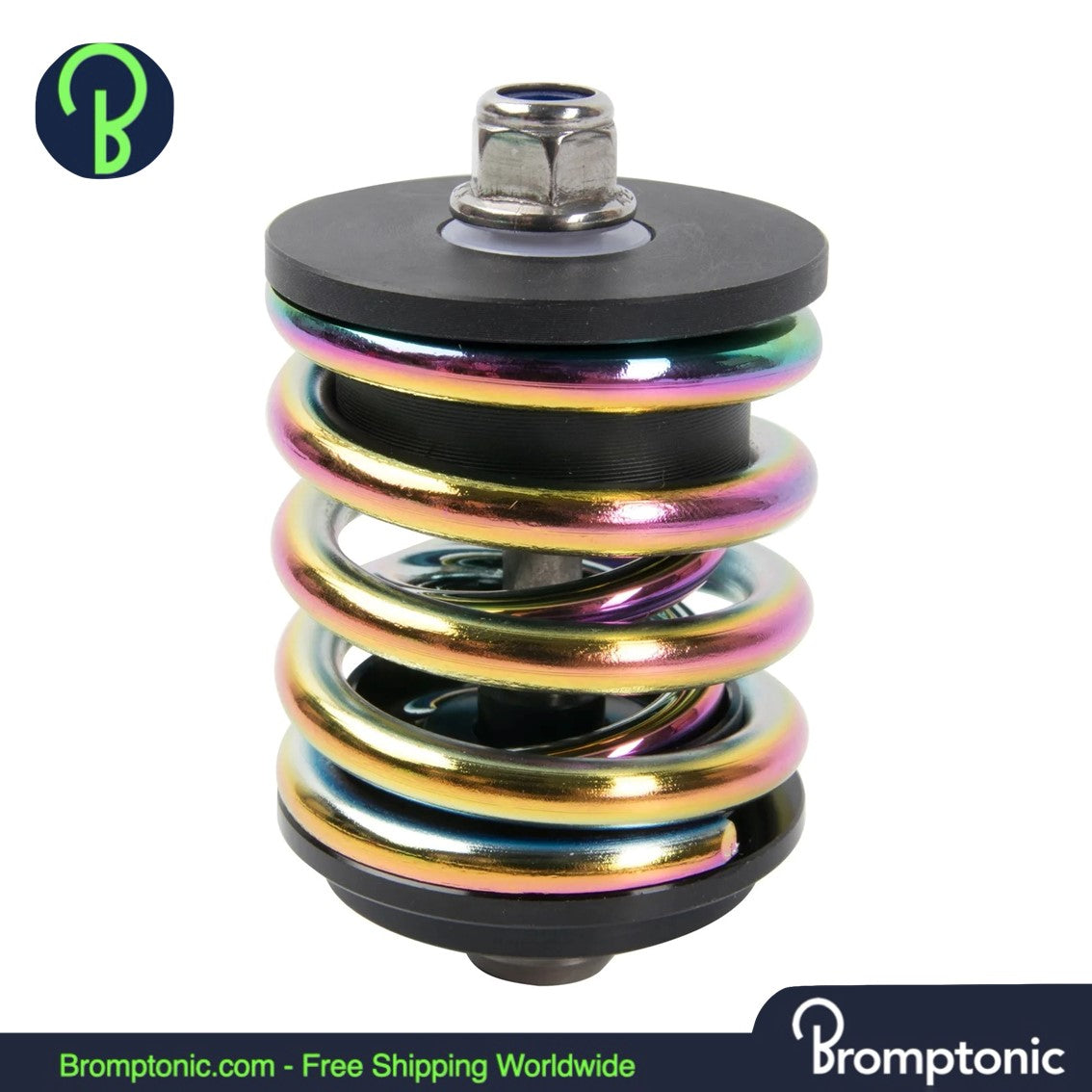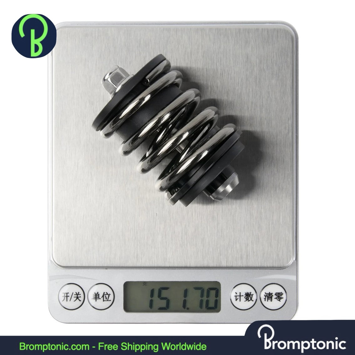 L'ammortizzatoreposteriore Brompton è un ammortizzatore a doppia bobina per la vostra bicicletta Brompton. La combinazione di bobina in acciaio e asta in titanio offre la combinazione di metalli più forte e leggera, solitamente utilizzata solo nei settori più importanti, come quello aeronautico. Il design a doppia bobina garantisce il massimo potere di assorbimento. Il peso è di soli 153 grammi ed è disponibile in diversi colori.