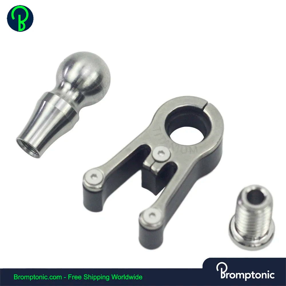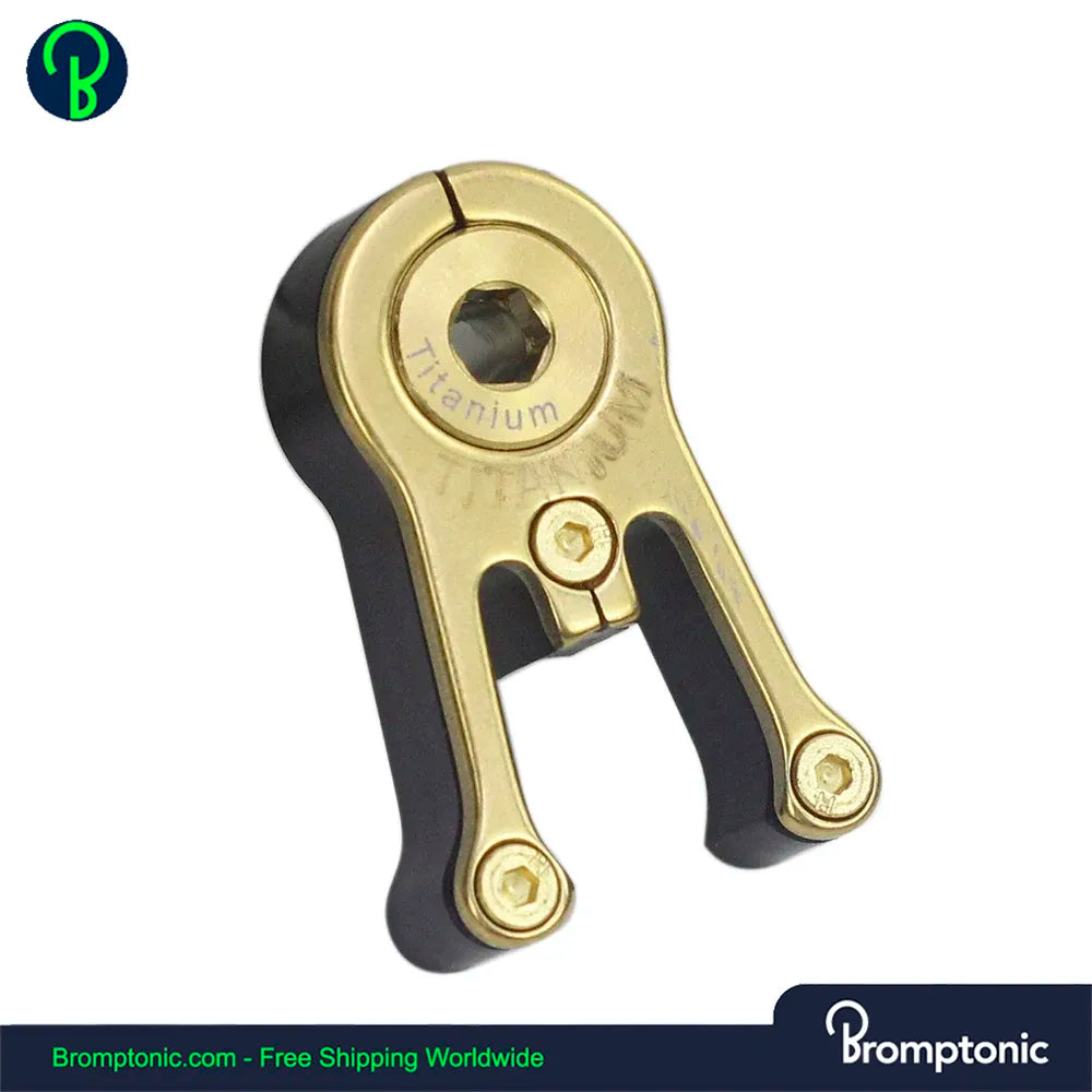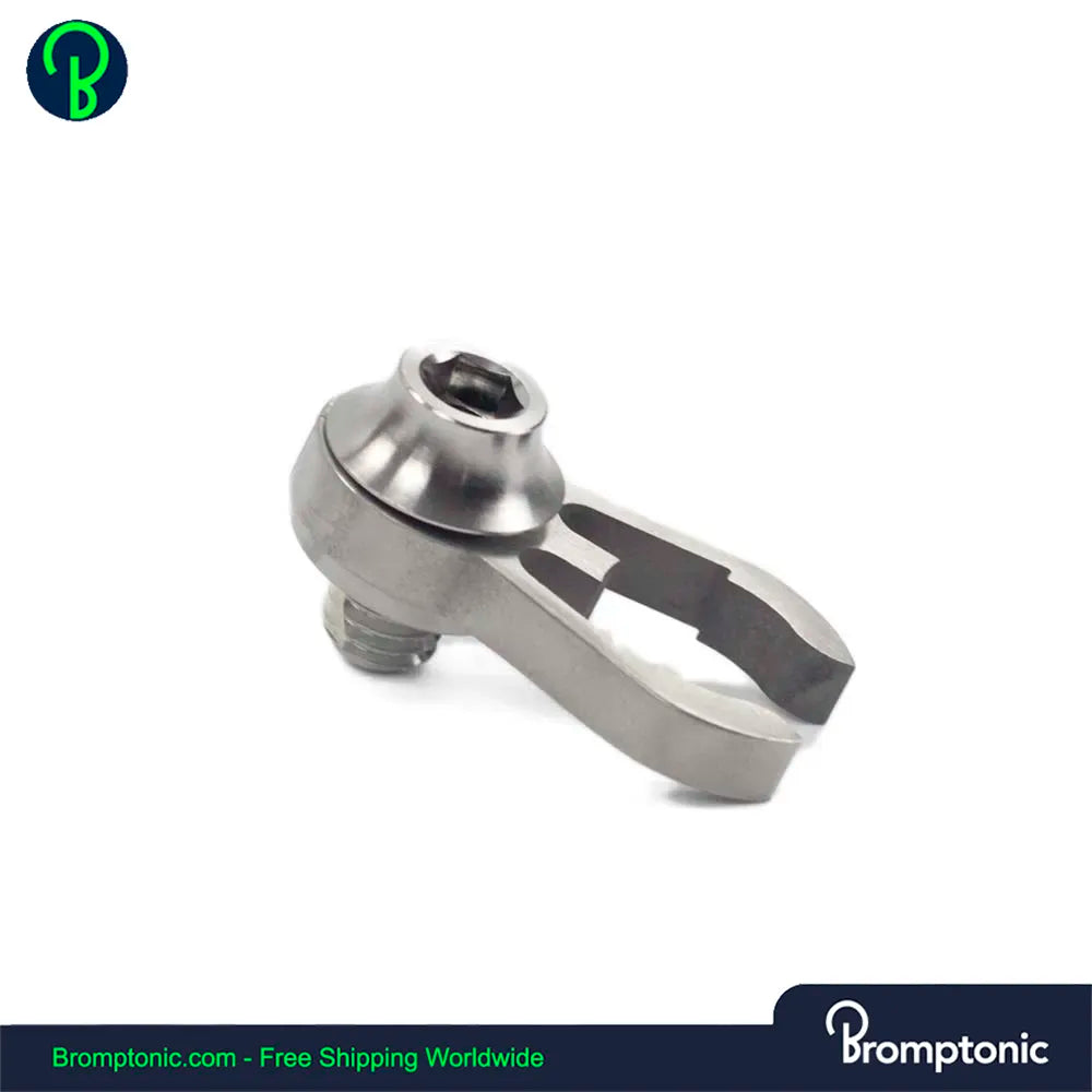 Brompton Titanium Bike Catch Holder per manubrio è un pezzo unico Brompton che consente di tenere la bicicletta al sicuro quando è piegata. Impedisce che l'attacco manubrio si muova quando è piegato. Questo particolare prodotto è disponibile in diversi colori e consente di aggiungere un tocco personale alla propria Brompton, distinguendola dalle altre. Questo prodotto è realizzato in titanio e quindi è più leggero.