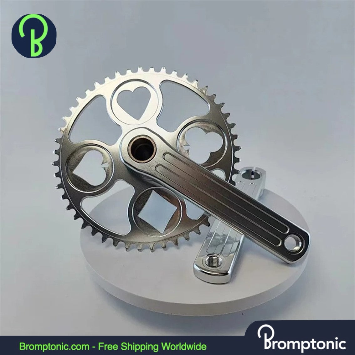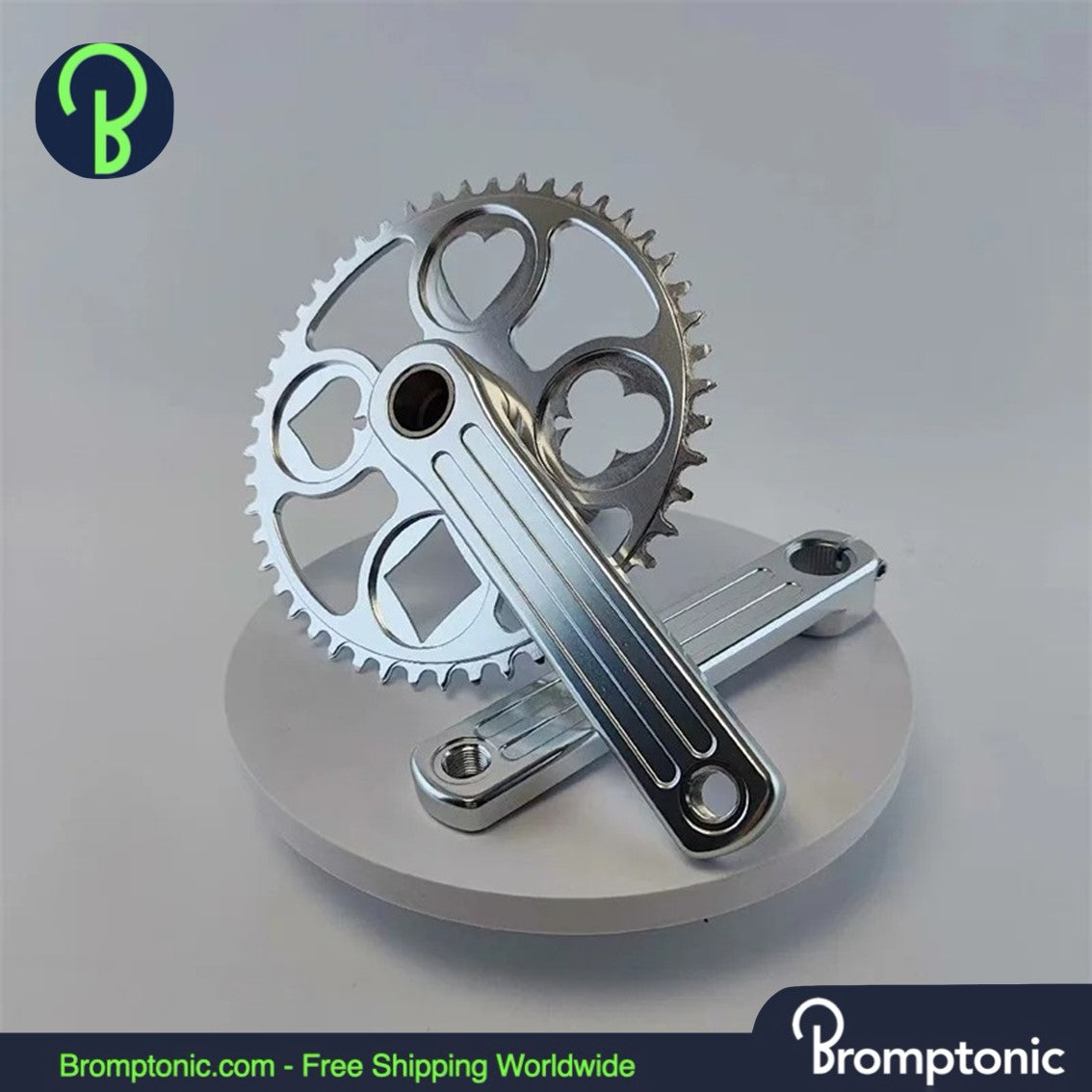 Enhance your Brompton bike's performance and aesthetics with our meticulously crafted Aluminum Alloy Polished Silver Chainring Crankset. Available in 48T and 50T options, this crankset is designed to offer both style and durability.