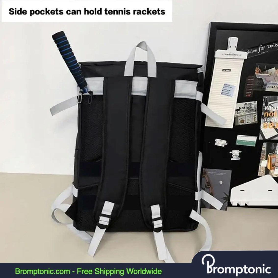 • Dedicated side pockets perfect for carrying tennis rackets or large items